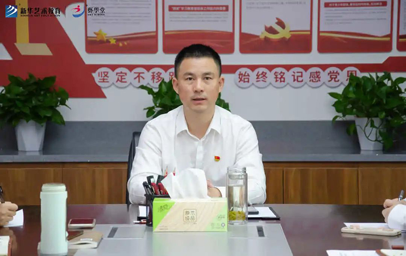 藝學堂黨支部書記、新華藝術教育總經理蔡賢滿在總結講話中指出,藝學堂黨支部領導班子正式搭建起來了,這是藝學堂發展史上的一件大喜事。他希望,藝學堂黨支部領導班子成員根據職責分工,明確目標,落實責任,堅守立德樹人根本任務,踐行為黨育人、為國育才初心使命,不斷增強責任意識和創新意識,努力把藝學堂黨支部建設成精誠團結、充滿活力、奮發向上的堅強集體;他號召,黨支部全體黨員要充分發揮模范帶頭作用,緊密圍繞中心工作,真抓實干、開拓進取、爭先創優,不斷提升黨支部的凝聚力和戰斗力,為新時代藝學堂的高質量發展提供保障、保駕護航,以優異成績迎接黨的二十大勝利召開。